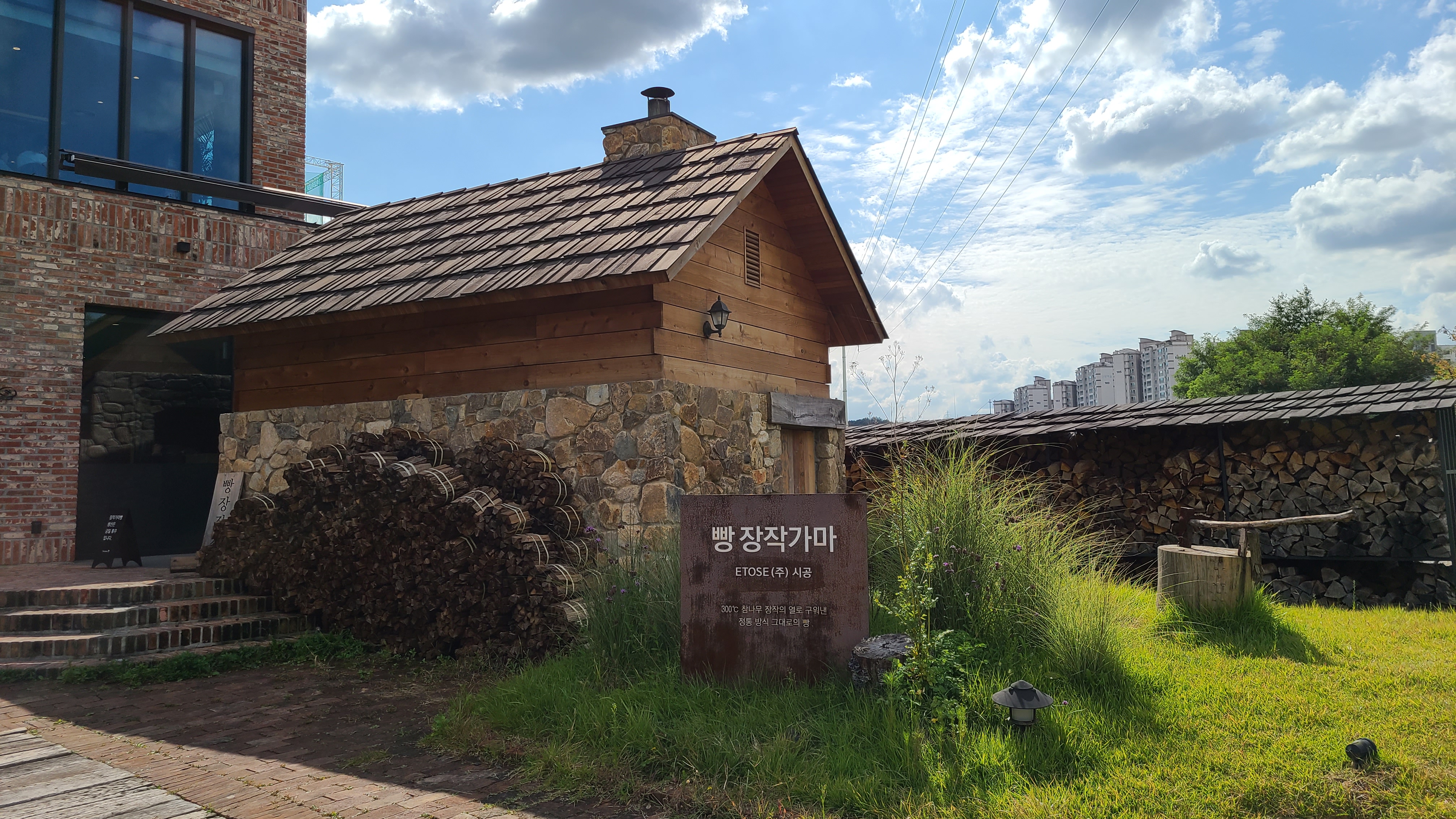 카페 입구 옆에 전통 방식으로 빵을 구워내는 장작가마가 있다.