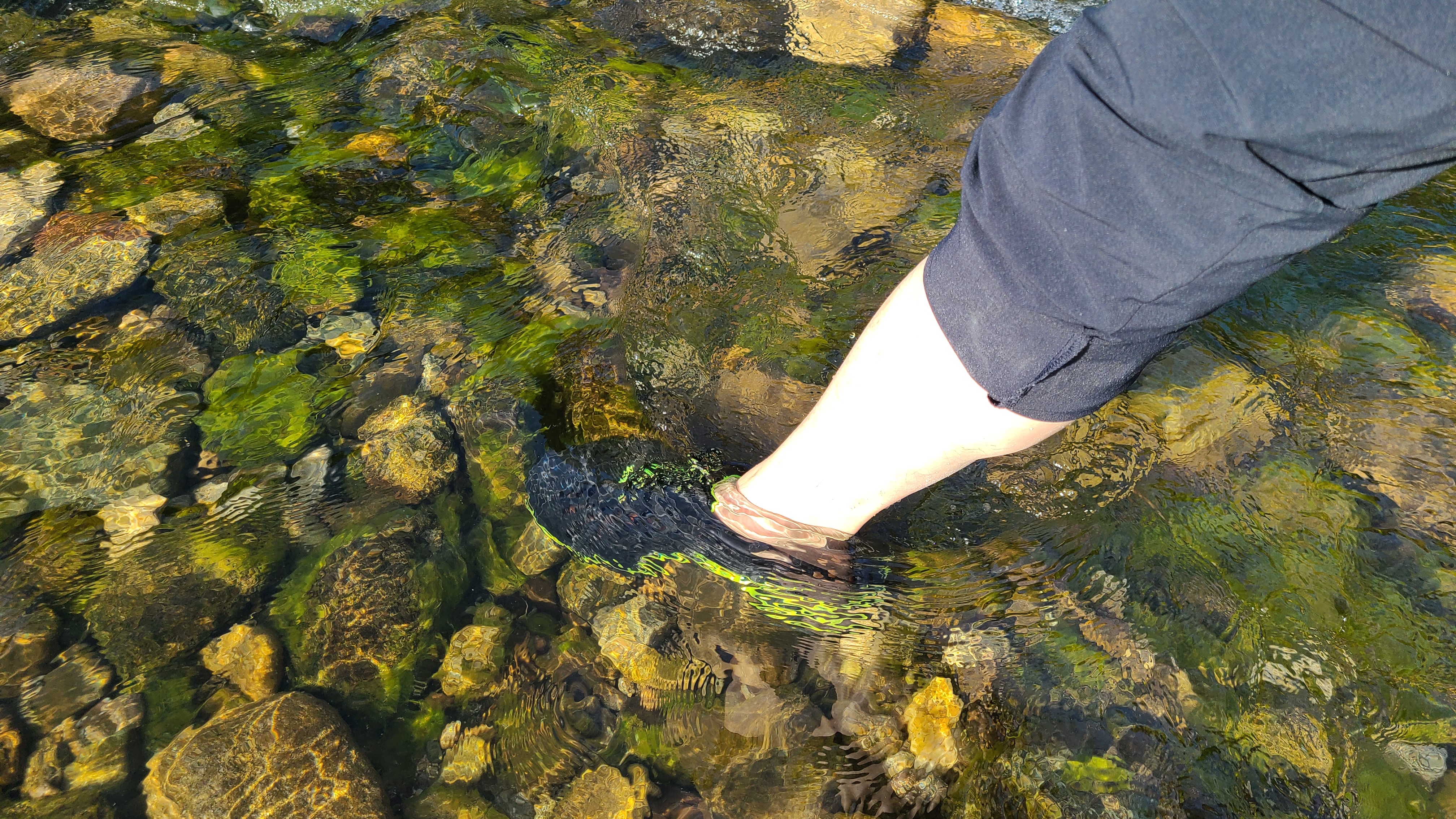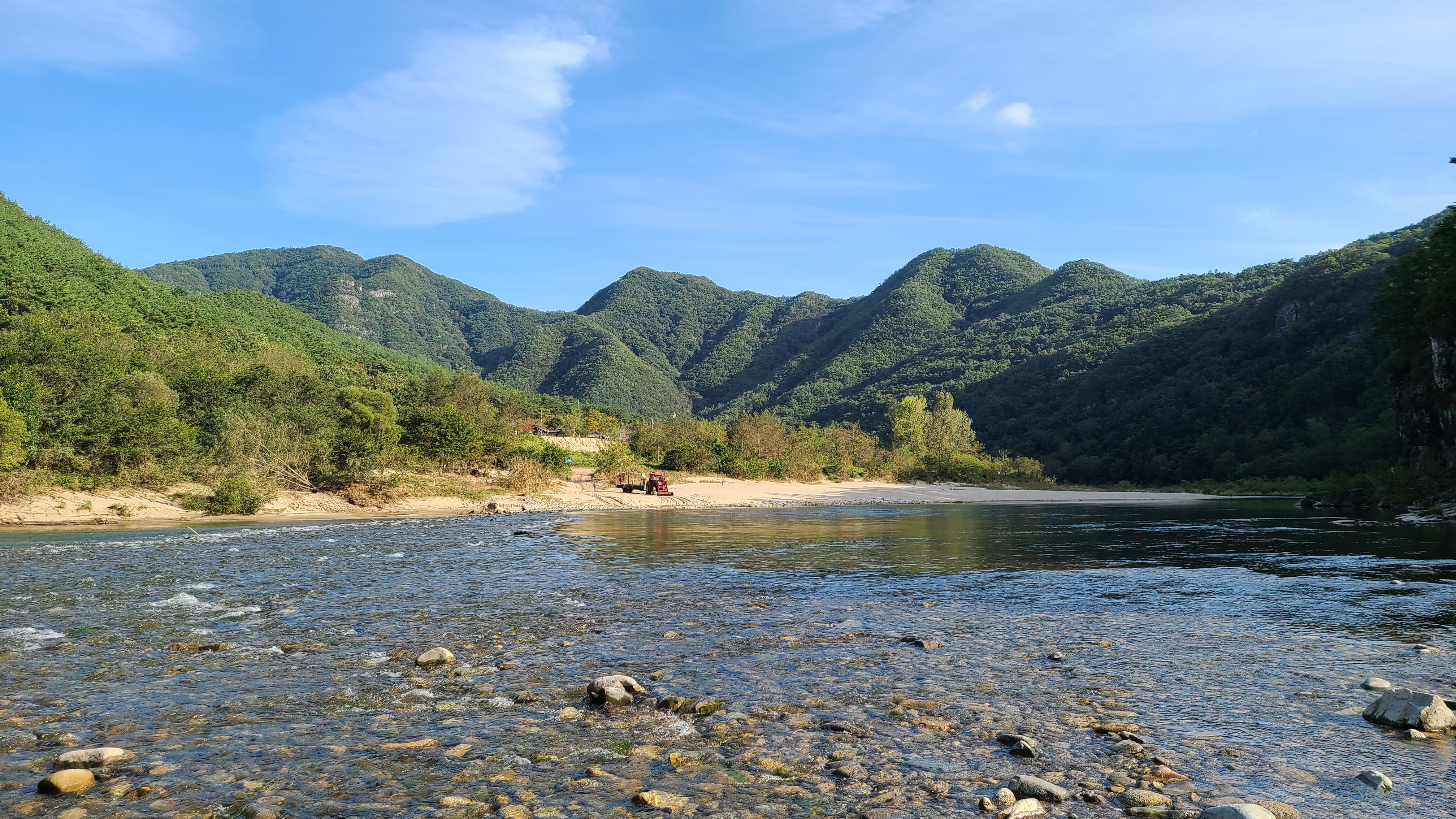 자갈이 보여 맨발로 건넜지만 언제나 안전제일...