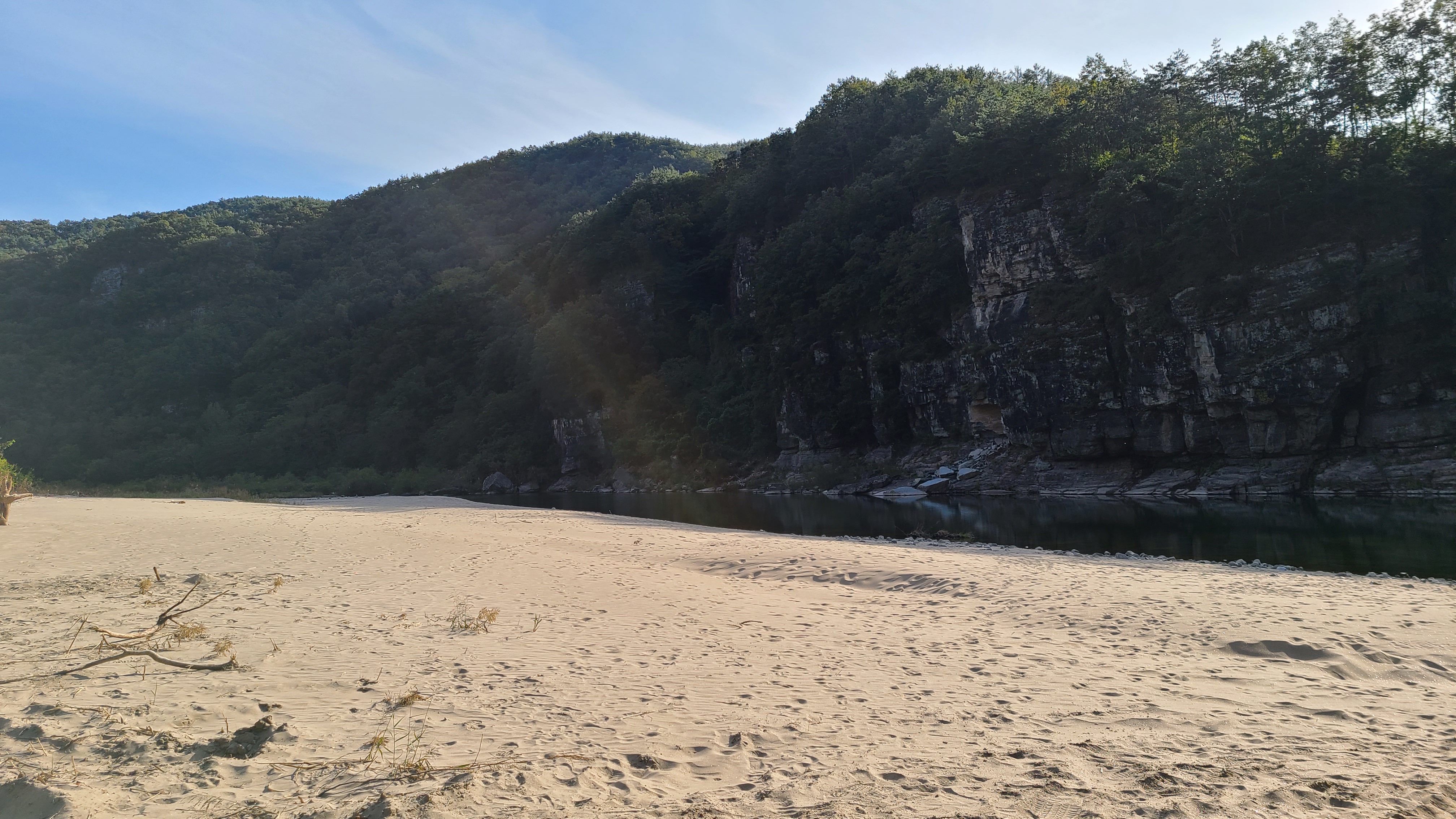 메밀꽃과 굽이 흐르는강과 절벽으로 절경이 멋진곳이다.