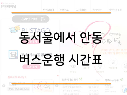 | 안동 동서울 고속버스 시간표, 요금, 소요시간 정리 (0) | 2019.04.07 |