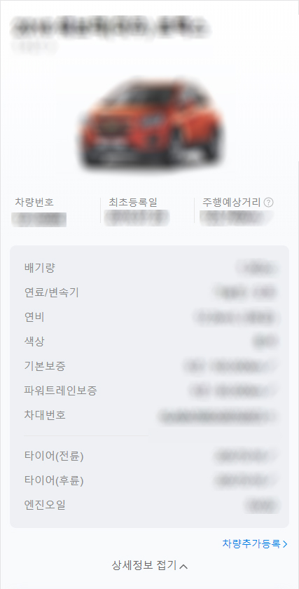 차량 정보가 나타나게 됩니다.