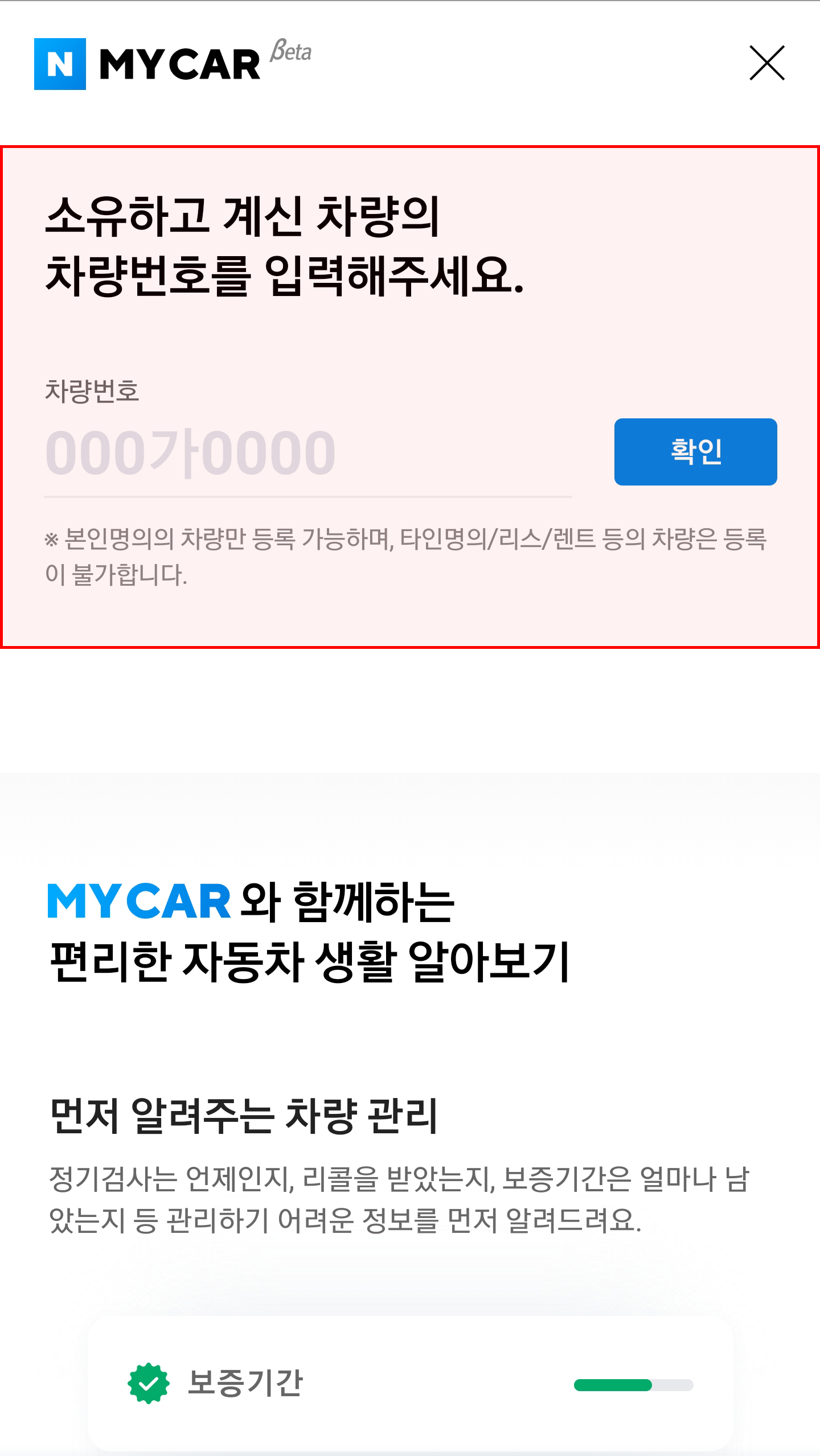 우선 본인 차량의 번호를 입력 후