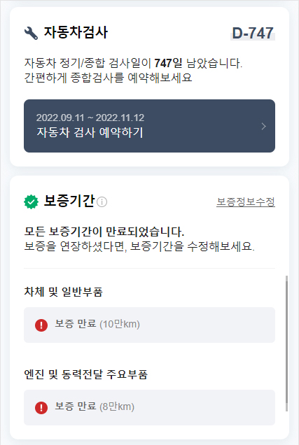 본인 소유의 차량정보가