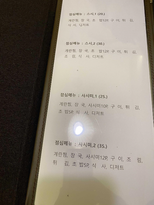 사시미 코스는 점심,저녁 코스가격이 5000원씩 올랐어요