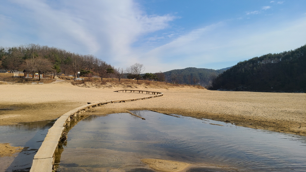 두번째 외나무 다리까지 갔다가 되돌아 오는 코스로 올때 갈때 다른길로 산책하시면 됩니다.