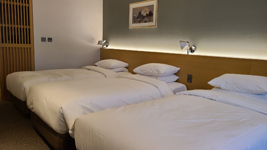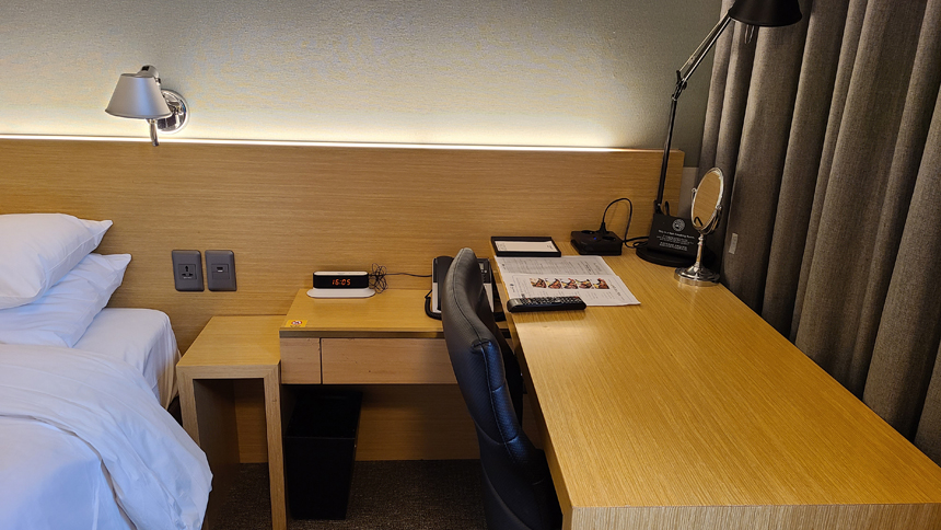 침대 헤드 부분에 독서등이 하나씩 달려있다.