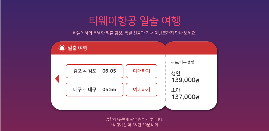 티웨이 2021년 일출여행