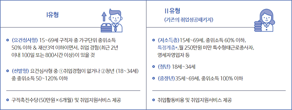 ※ 국민취업지원제도는 Ⅰ유형과 Ⅱ유형으로 지원됩니다.