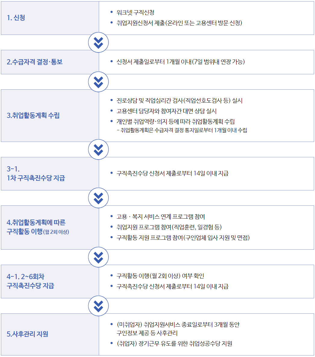 취업지원 서비스와 구직촉진수당(최대 300만원)을 지원합니다.