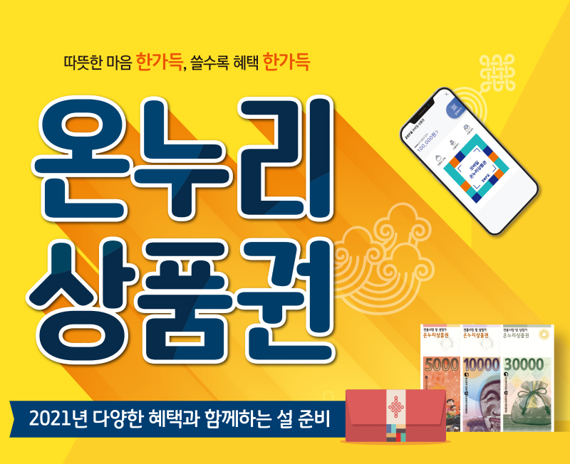 - 모바일 온누리상품권으로 50만원 이상 결제 시 추첨을 통하여 모바일 온누리상품권 5만원 권 증정