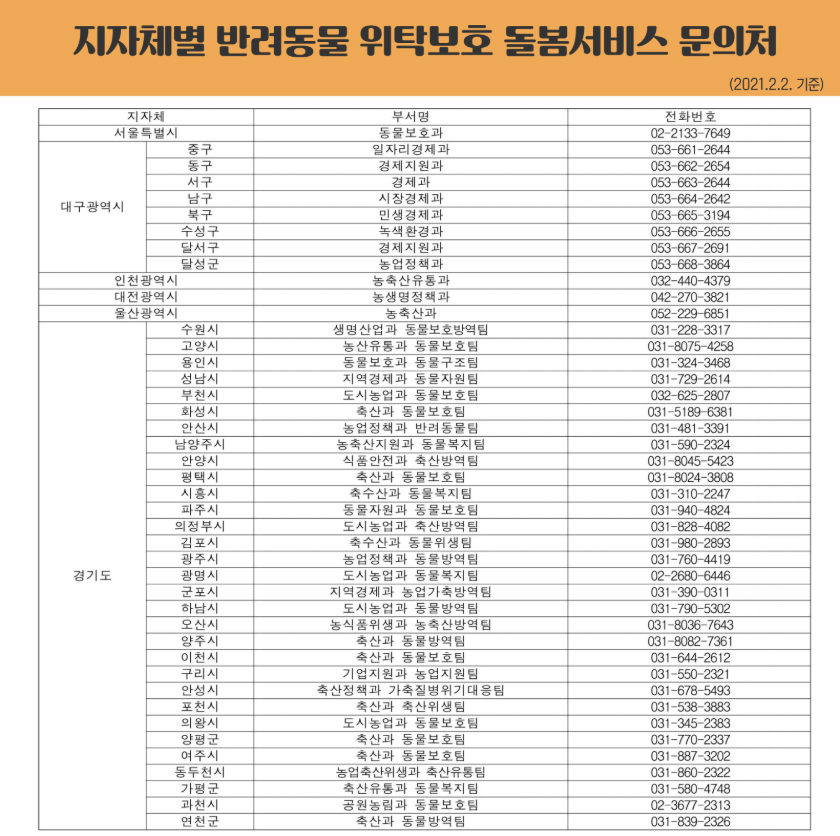 | 지자체 보건부서 | 동물위생시험소 | 검사 결과 판정 이전까지 반려동물의 외출을 금지하고 자택 격리조치! |