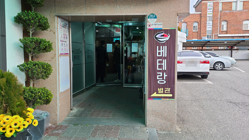 식당 바로 옆 전용 주차장이 넓은편이라