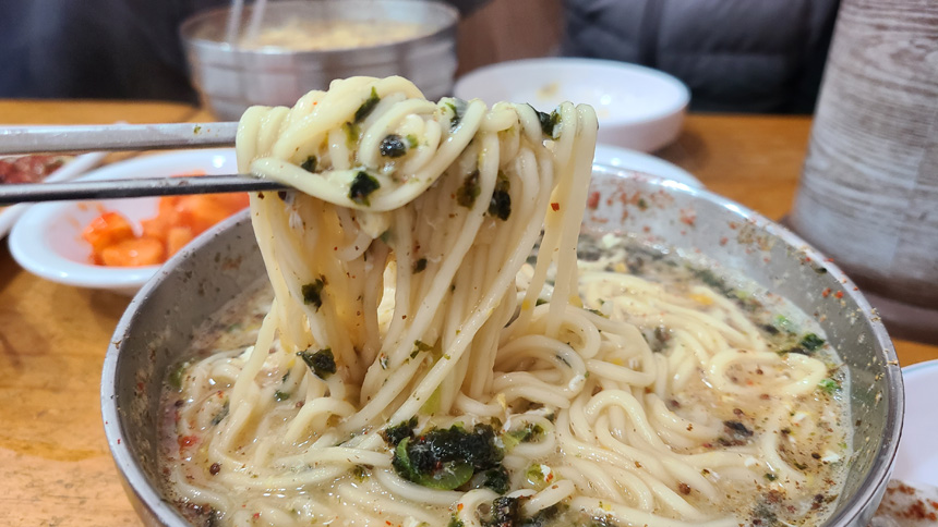 보통의 칼국수와는 면도 다르다.