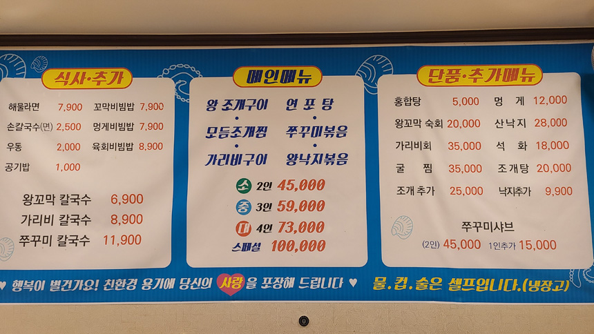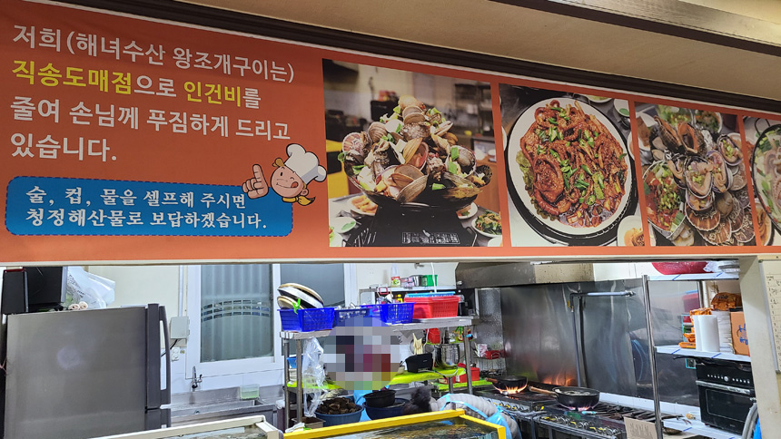 왕조개구이집 해녀대합실.