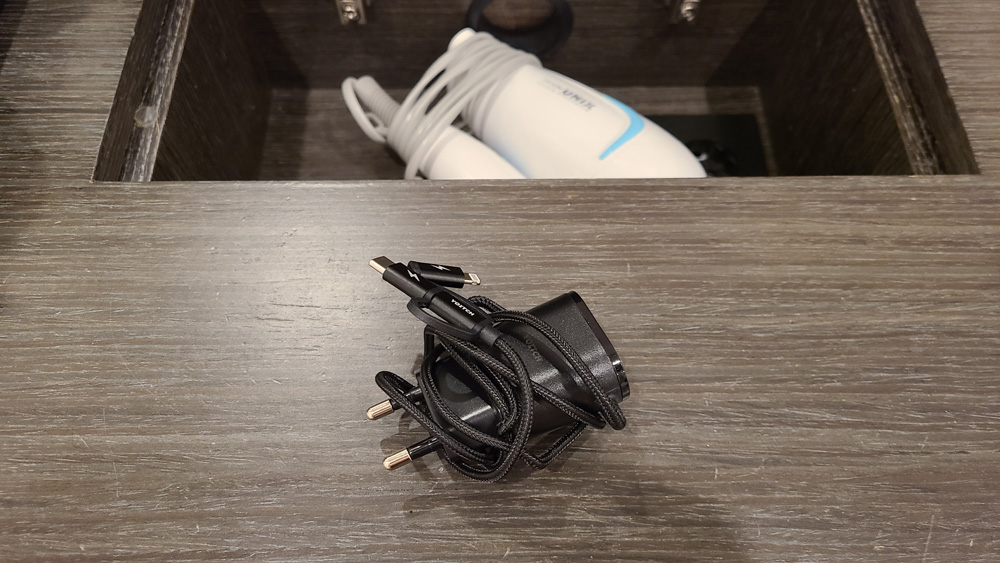 헤어 드라이어와 휴대폰 충전기도 있다.