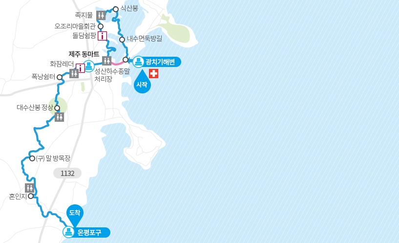 제주 올레길 1 코스 말미오름 종달수다뜰 책약방 성산일출봉 지도
