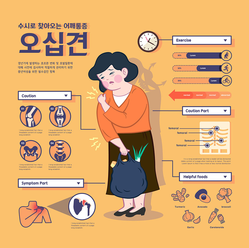 - 어떤 방향이든 팔을 움직이면 어깨 전체에 통증이 생긴다.