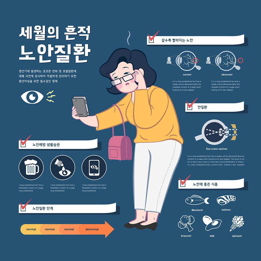 퇴행성 뇌질환,폐렴 등 감염 질환 ,관절 질환 ,눈 질환 등에 많은 관심을 가져야합니다.