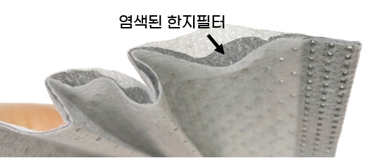 특허기술인 융착작업 한겹처리로 염색된 한지 필터와