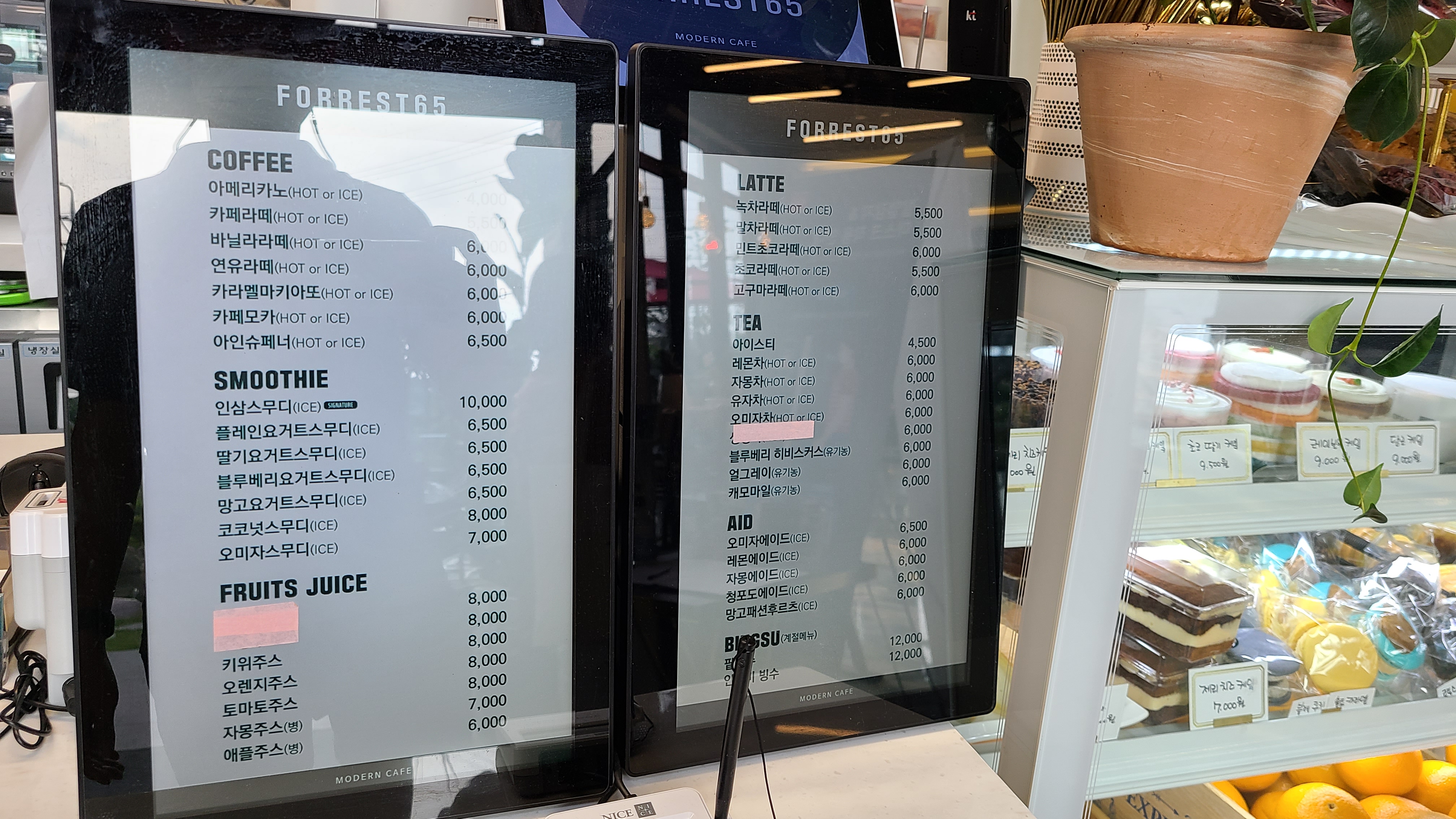 메뉴판도 찍었는데 카페가 햇살이 너무 잘 들어와서 잘 안 보이네요^^
