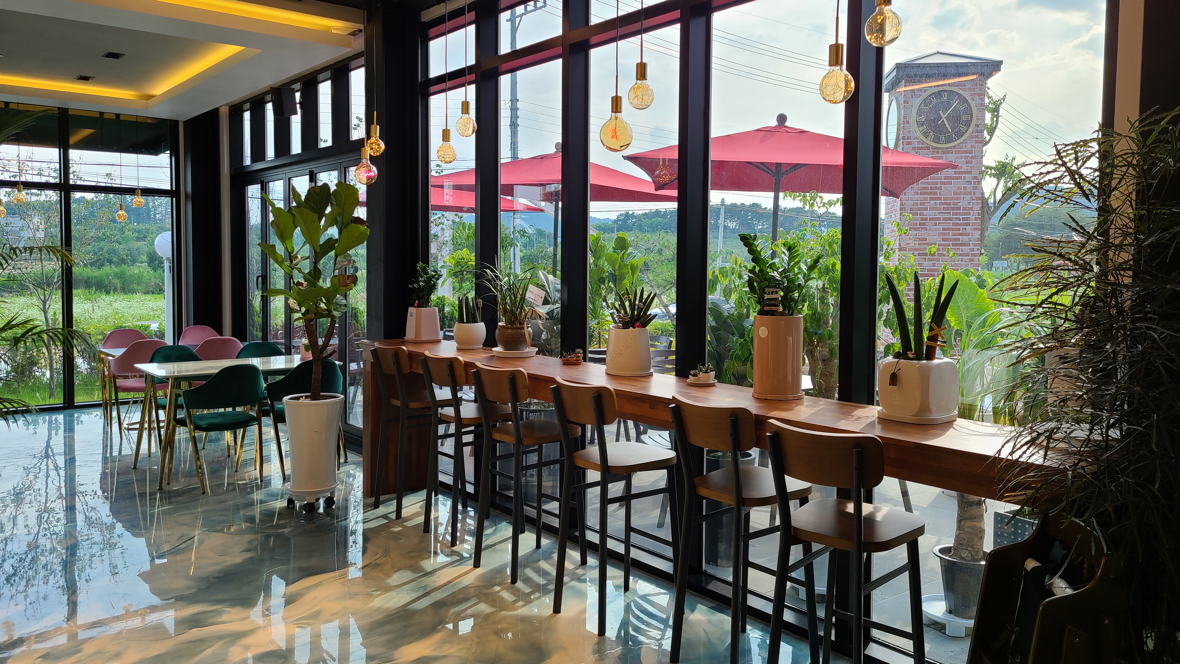 주문하고 좀 둘러보는데 1층 창밖으로 보이는 뷰가 참 예뻐요