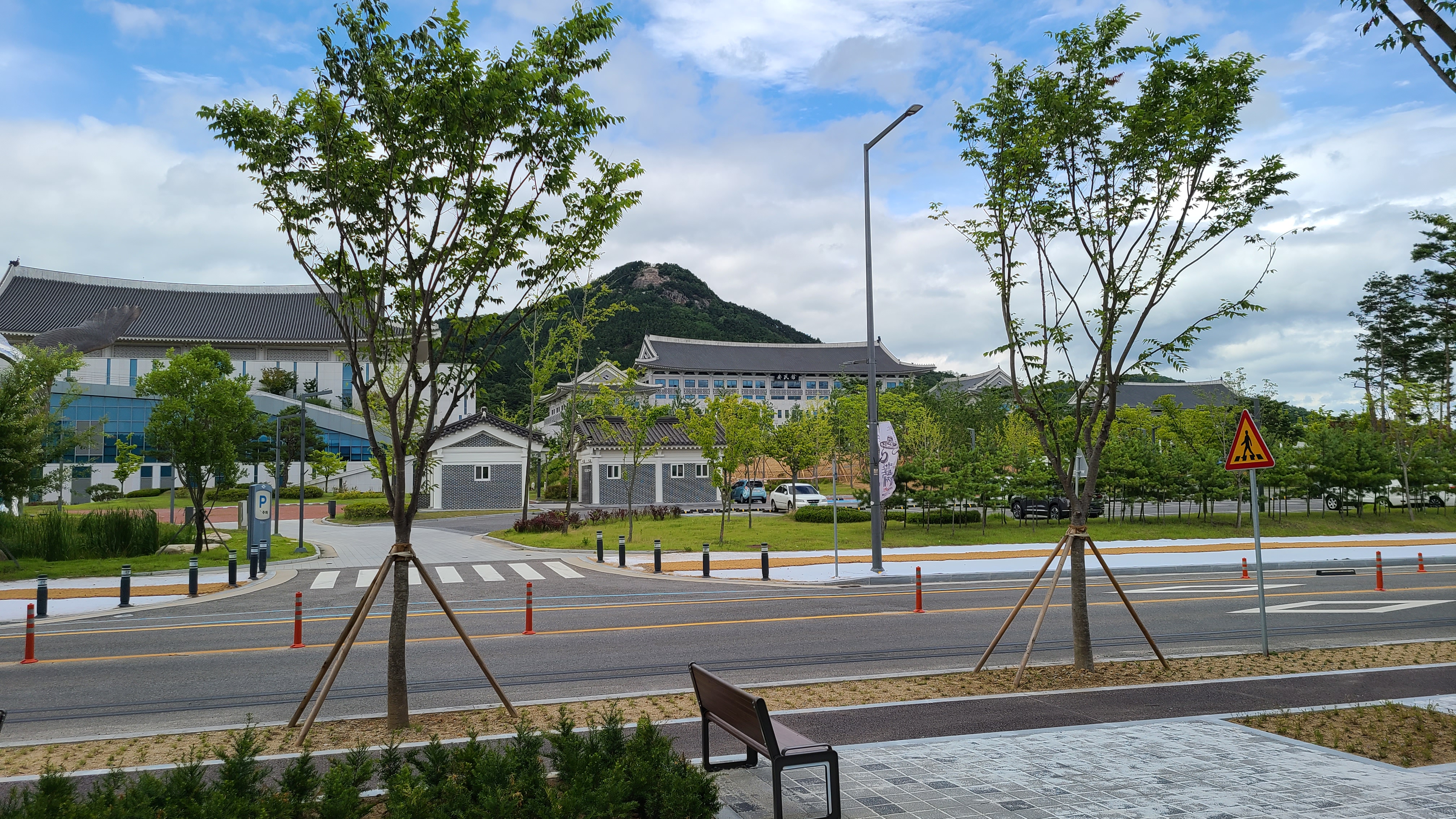 도청 앞, 남쪽으로는 천년숲이 있다.