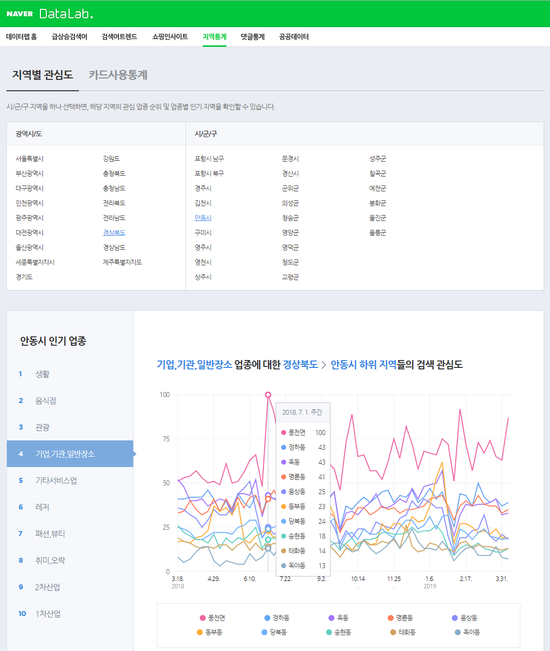 경상북도 안동시를 예로 들면