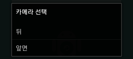 카메라 모양을 선택하면 뒷면 카메라와 앞면 카메라를 설정할 수 있다.