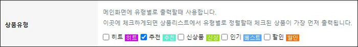영카트에서 기본적으로 히트, 추천, 최신, 인기, 할인으로 적용되어 있는 상품유형 아이콘의 문구를 수정하는 방법을 알려드립니다.