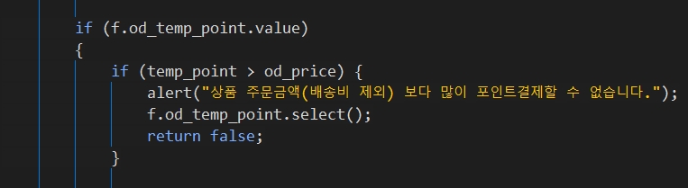 위 2개 파일을 열어서 Ctrl+F 를 눌러 [포인트결제]로 검색을 하면 이런 소스가 있을거예요.