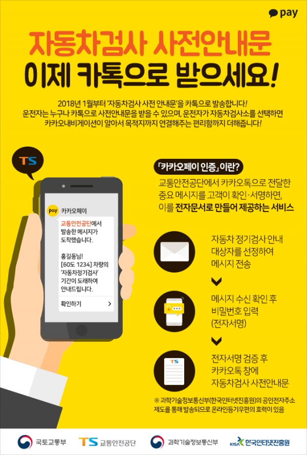 카톡 인증서로 열린 자동차 정기검사 안내장 전자문서