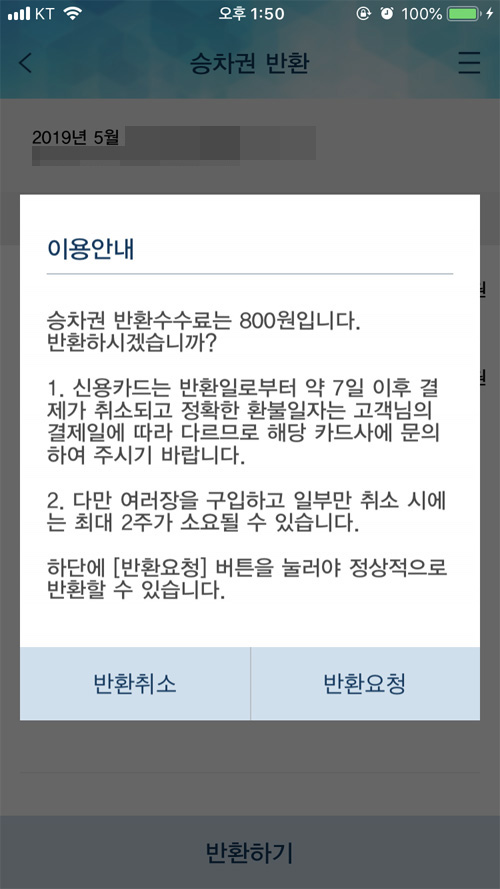 코레일톡 승차권 반환하기(기차표 환불받기)