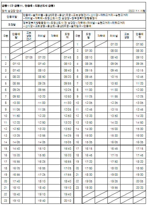 2022년 7월 1일 안동 시내버스개편