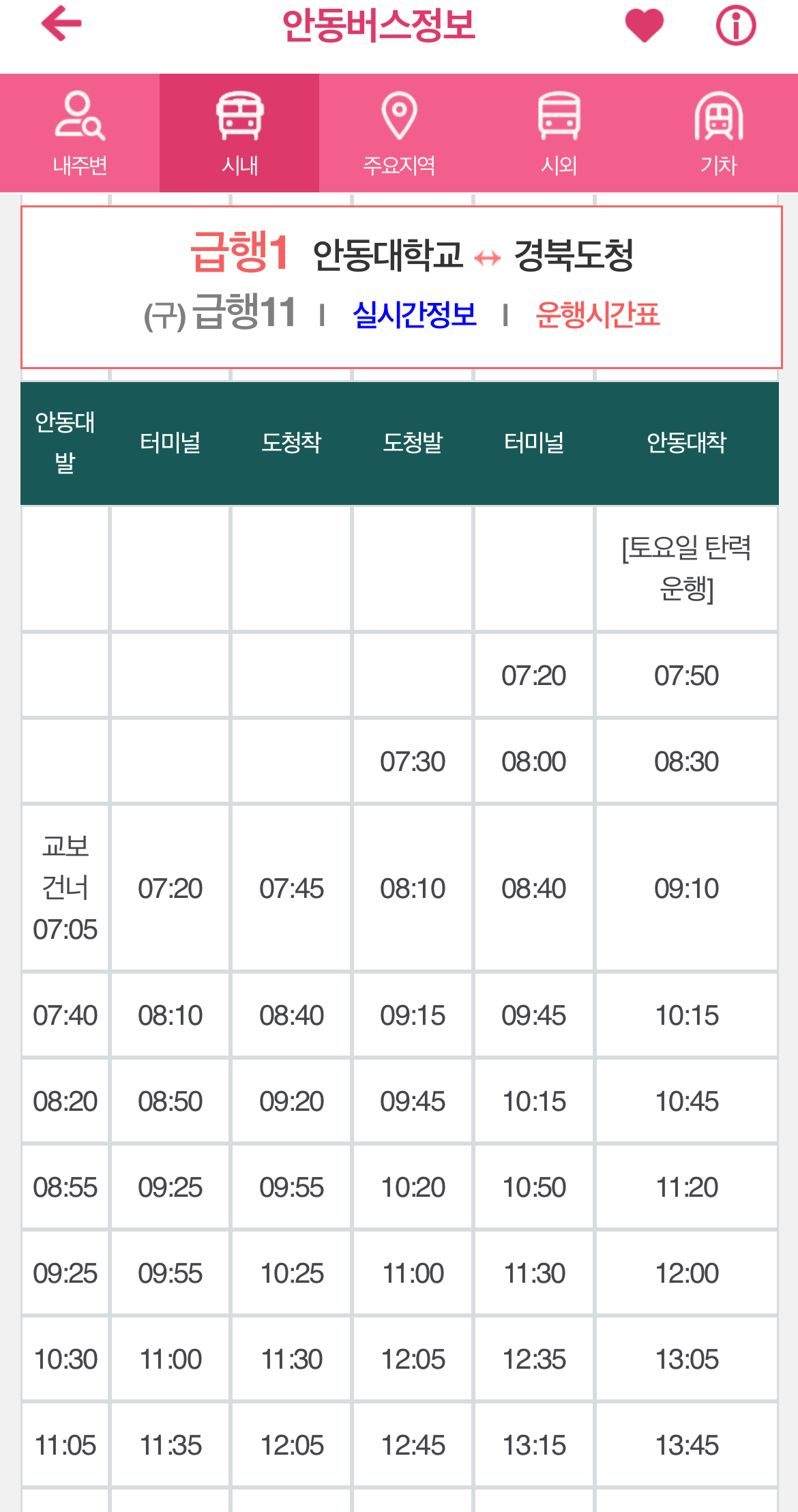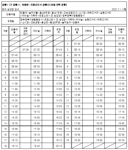 안동대버스시간표