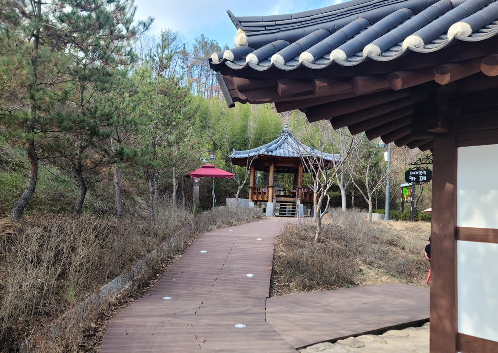 따뜻한 커피를 마시며 잠시 쉬다가 밖으로 나와 데크길을 따라가봅니다.