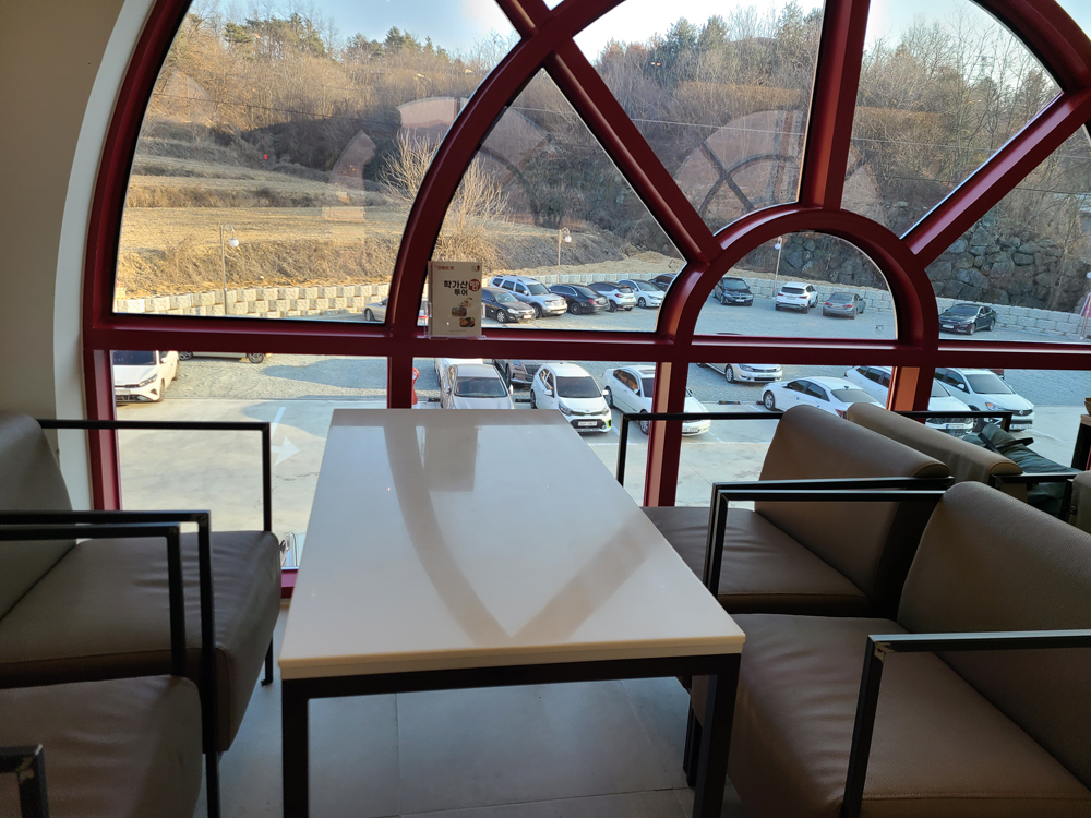 안동 송현오거리에서 영주방향으로 가다보면 학가산김치 공장 뒷편으로 새로 생긴 대형 카페가 있습니다.