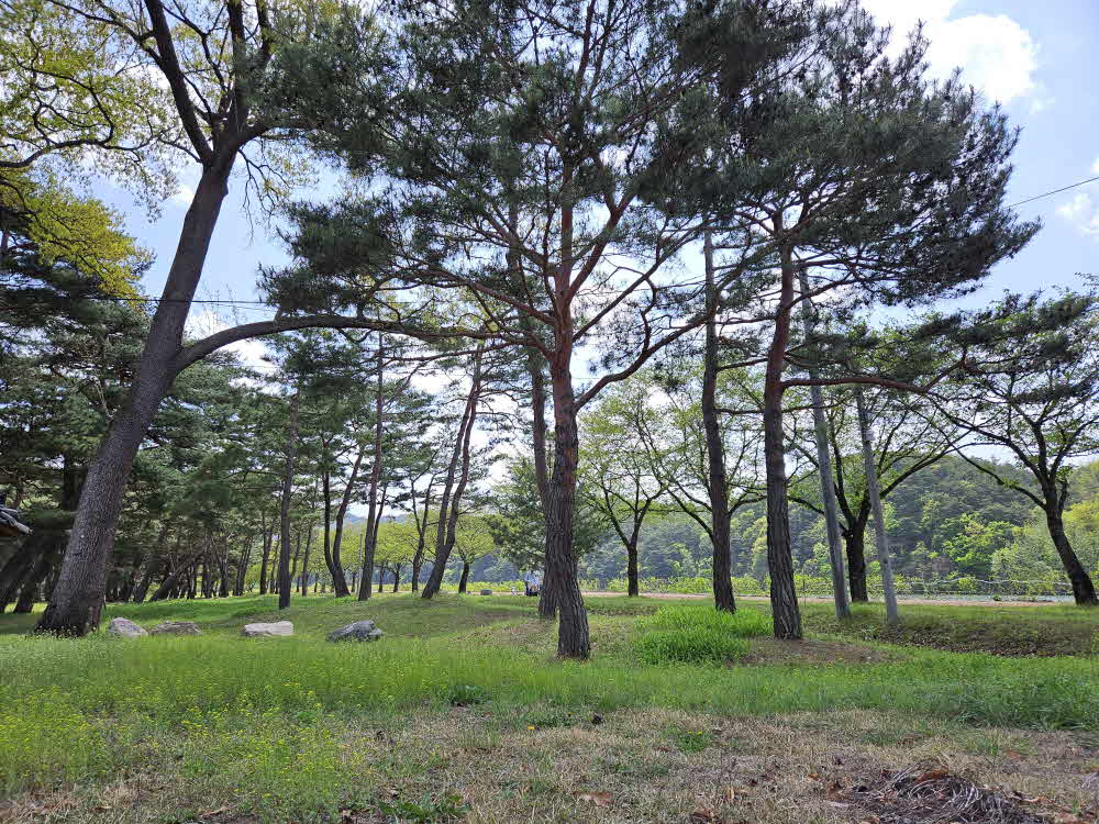 거대한 벚꽃나무 안쪽으로 소나무 군락지