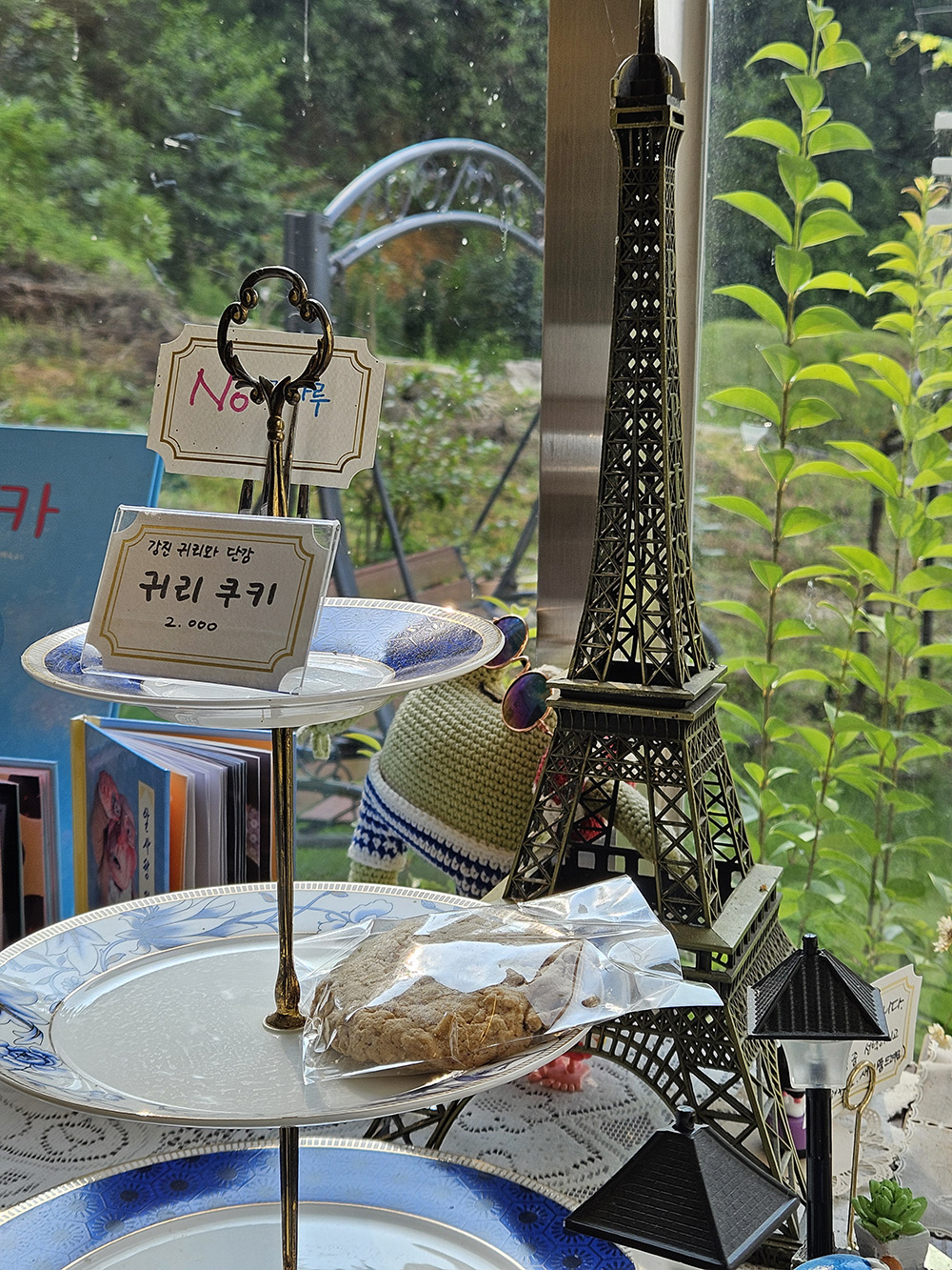 카페 안으로 들어가 보면, 각종 음료수와 쿠키들이 예쁘게 진열되어 있어요. 깨찰빵이 주 목적이었지만, 딸기 스무디도 시도해봤답니다. 스무디를 기다리며 가게 내부를 둘러보니, 곳곳에 예쁘게 꾸며진 미니 장식품들이 눈에 들어왔어요. 세트로 팔고 있는 미니미니 장식품들은 집에 두면 너무 예쁠 것 같더라구요. 그리고 귀여운 미니 자전거 장식품도 발견했어요. 요리책과 수제 디저트도 함께 팔고 있는데, 다양하고 아기자기한 아이템들이 많아서 구경하는 재미도 쏠쏠했어요. 이곳만의 독특한 분위기를 느낄 수 있는 특별한 공간입니다.