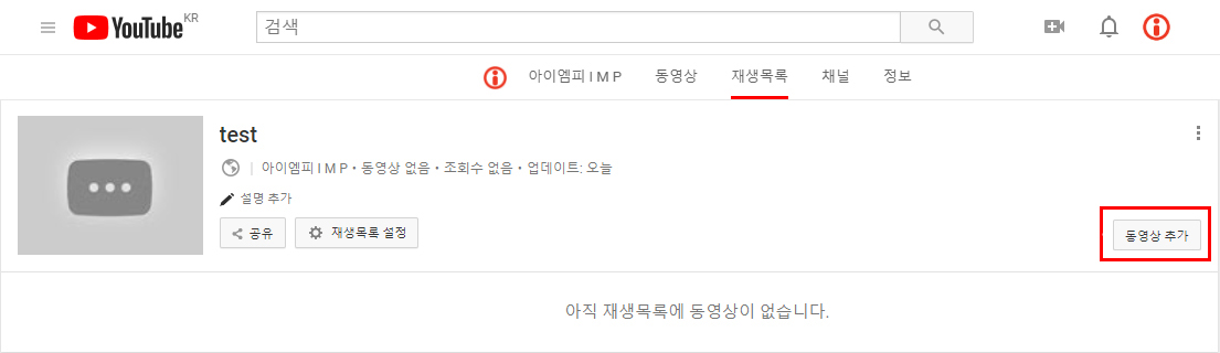 다음으로 재생목록에 동영상을 추가해보겠습니다.